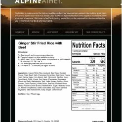 AlpineAire Foods Ginger Stir Fried Rice with Beef – 1 Serving – None