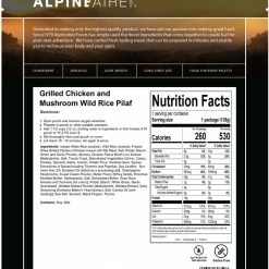 AlpineAire Foods Grilled Chicken and Mushroom Wild Rice Pilaf – 1 Serving – None