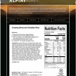AlpineAire Foods Creamy Broccoli Cheddar Rice – 1 Serving – None