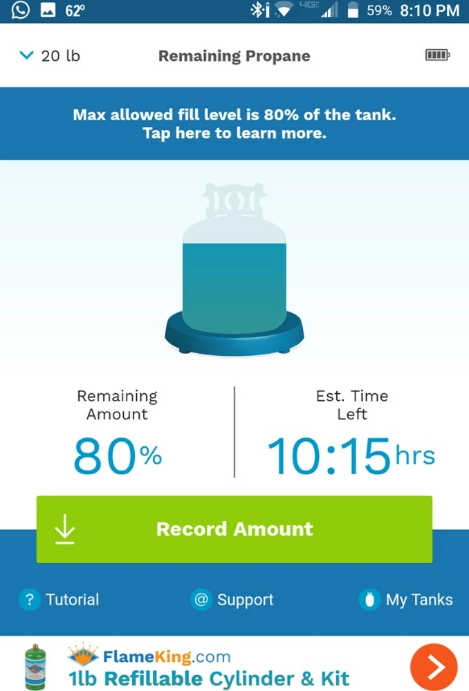 - Also tracks 30 lb. and 40 lb. cylinders with a free trial, followed by a small in-app purchase