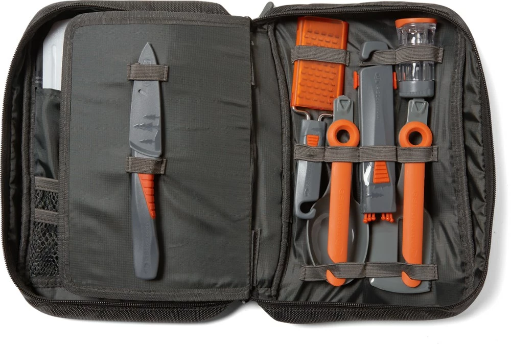 The GSI Outdoors Destination Kitchen Set 24 is a 24-piece set that includes 4 cutlery sets, folding tools, a cutting board, utility knife, spice shakers and much more to complement your camp kitchen.