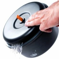 | Includes | 2L pot; strainer lid; frypan; 2 bowls; 2 mugs with sip-it lids; pot gripper; storage sack/sink |