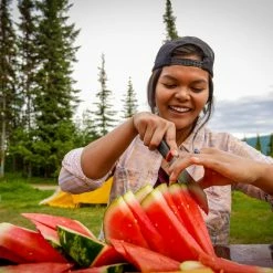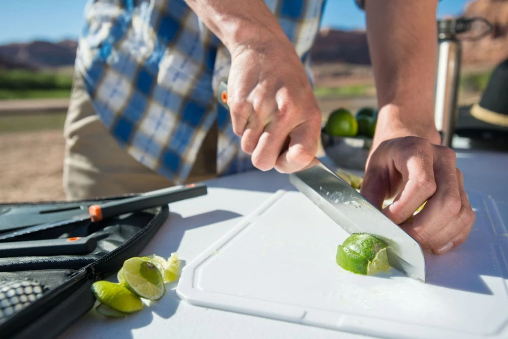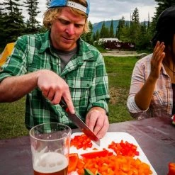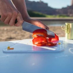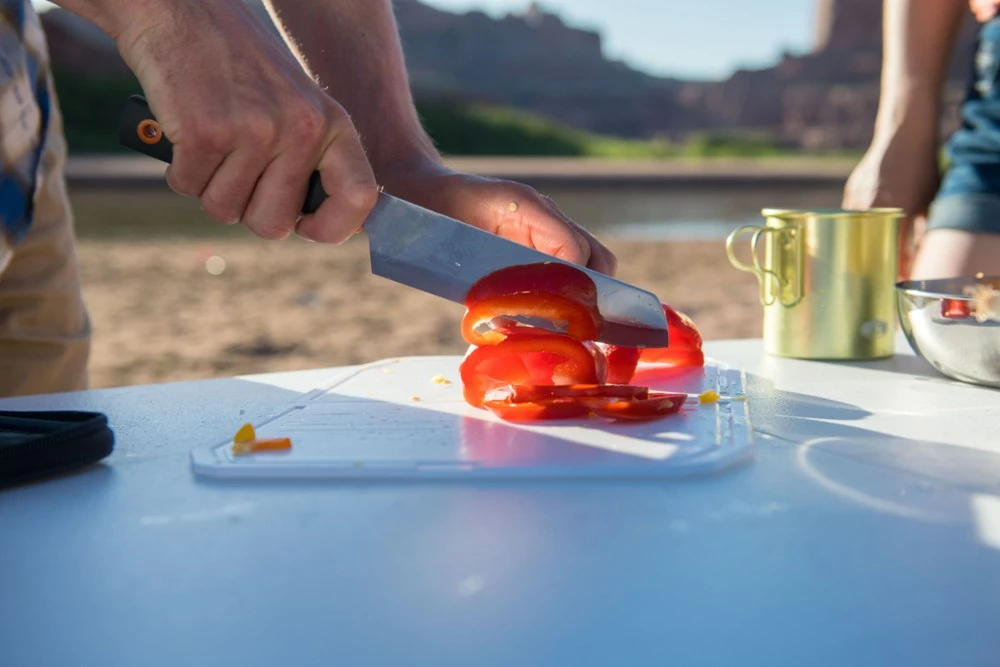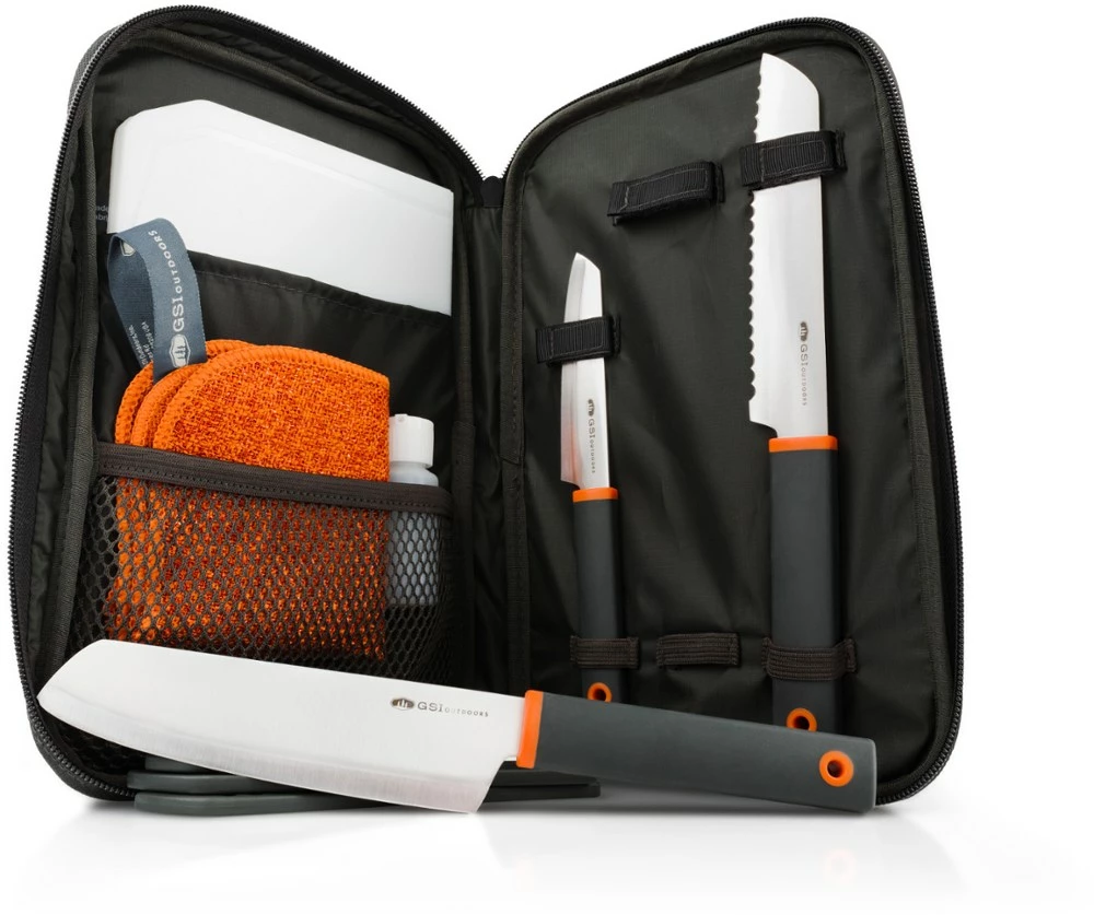 Dice fragrant onions, slice through juicy tomatoes and halve fluffy bagels with the handy GSI Outdoors Santoku knife set—essential kitchen gear for those whose knife skills are in high demand.