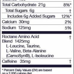 - Roctane formula of simple and complex carbohydrates enhances performance with histidine, citrates and branched amino acids