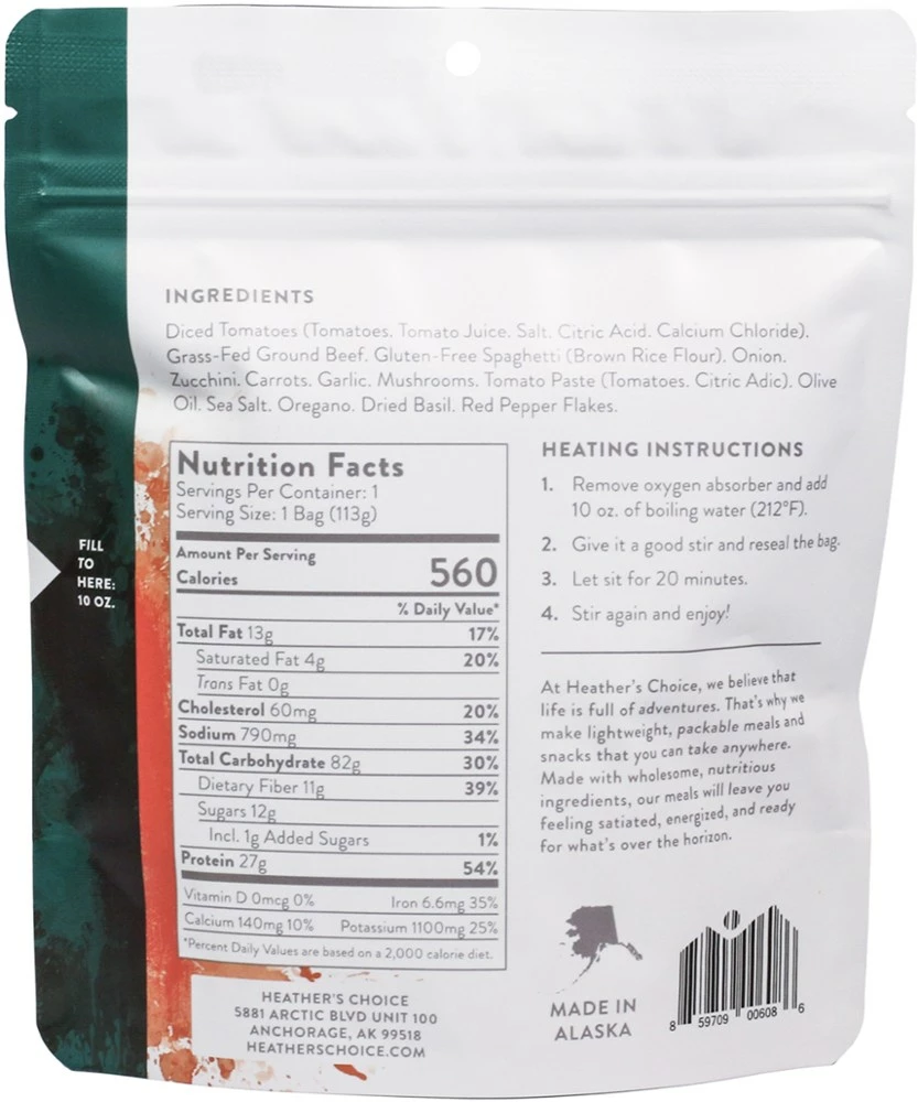 You won’t find mom’s cooking in the backcountry, but at least you can imagine it with Heather’s Choice Mom’s Spaghetti with Beef and Marinara Sauce, a rich comfort staple to refuel after a hard hike.