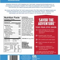 Enjoy a delicious meal of tender beef, egg noodles, savory mushrooms and onions in a creamy sauce. Mountain House Pro-Pak Beef Stroganoff provides the fuel you need for success.