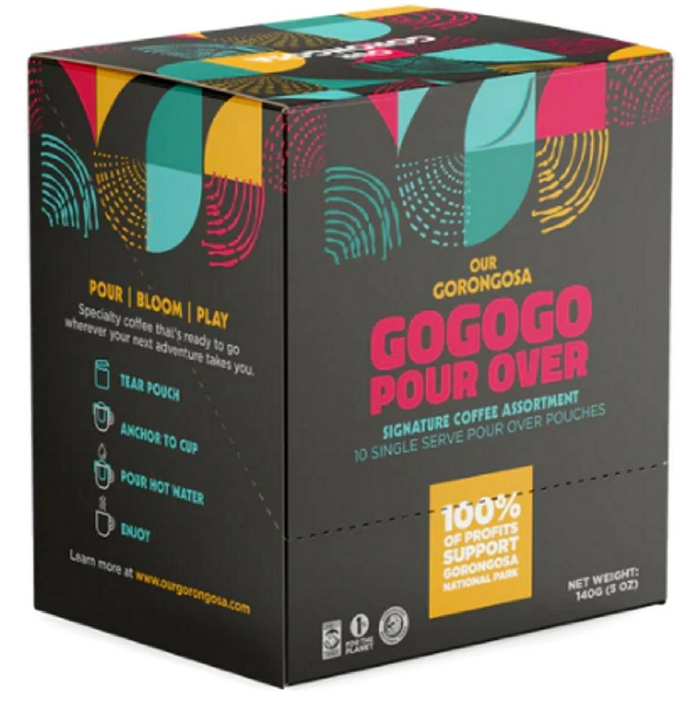 Get your day started right with a hot cup of joe the next time you’re camping. This box of Gorongosa Gogogo Pour Over coffee includes 10 pouches with a mix of light, dark and medium roasts.
