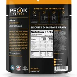 Start your trail day off right with PEAK REFUEL Biscuits & Sausage Gravy, a protein-rich breakfast with real buttermilk biscuits, cooked sausage crumbles and peppered country-style gravy.