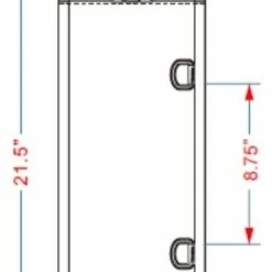 - External dimensions: 21.5 in. (length) x 8 in. (height) x 17.75 in. (width; 10 in. at small taper side)