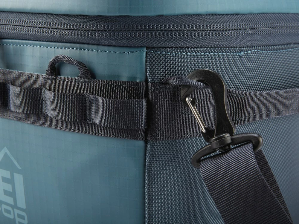 Chill enough food and drink for a weekend of camping or a very long road trip. The REI Co-op Cool Haul 18 soft cooler filled with 10 lbs. of ice will keep 18 cans below 40°F for up to 65 hrs.
