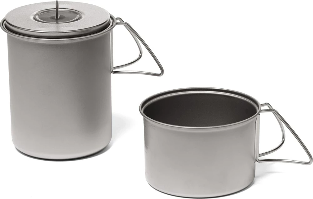 The updated Snow Peak Titanium Mini Solo cookset has streamlined handles, a slightly larger pot, stay-cool silicone tab and a cup that holds almost twice the original volume, and weighs just 6.38 oz.