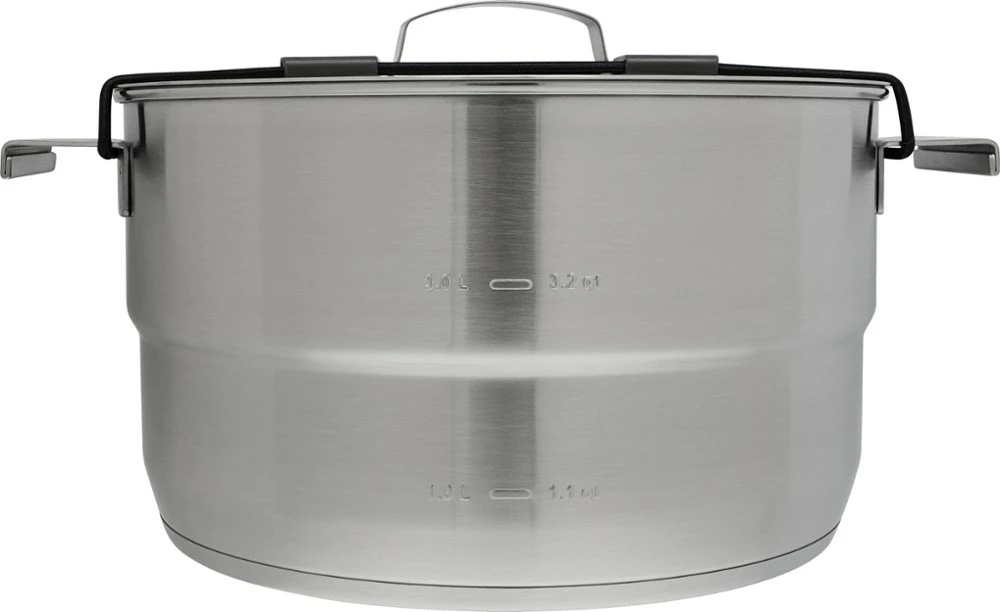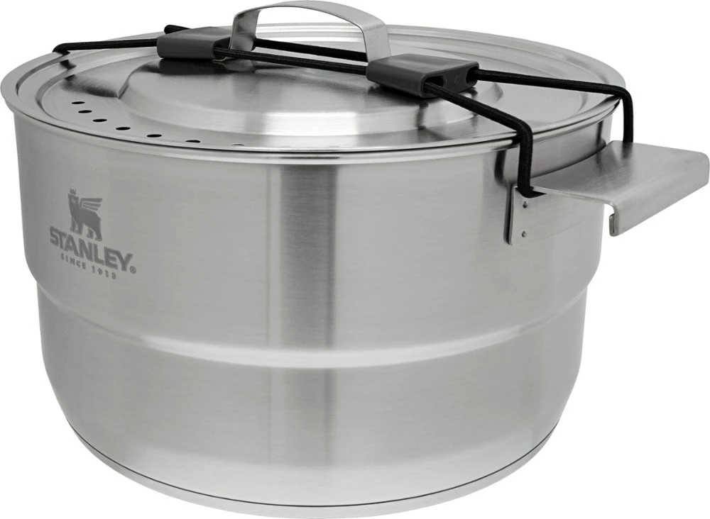 With everything you need to cook a satisfying meal outdoors, the 11-piece stainless-steel Stanley Even-Heat Camp Pro cookset nests together to save you space.