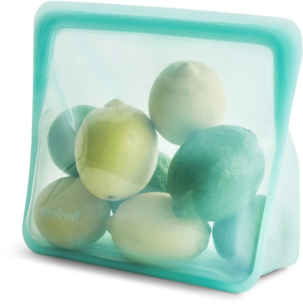A trusty companion for bulk shoppers, coffee connoisseurs, marinade masters and travelers, the Stand-Up Stasher bag helps keep food fresh and slosh-proof soups or toiletries.