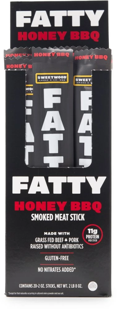 The small-batch Sweetwood Fatty meat stick is made with USA grass-fed beef and antibiotic-free pork and all-natural ingredients, making it a tasty treat on any adventure.