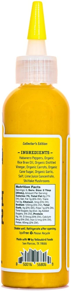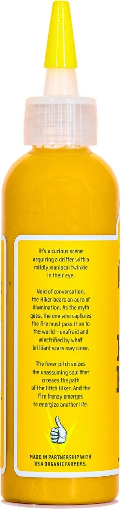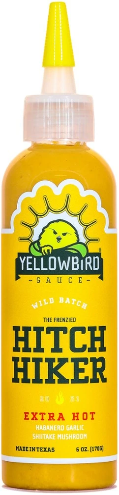 Habanero peppers and shiitake mushrooms come together in the spicy and mustard-forward flavor of this Yellowbird Hitch Hiker Extra Hot hot sauce. Add a fiery kick to your campsite cuisine.